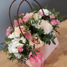 Композиция из белой хризантемы, кустовых роз и гортензии в изящной корзинке – это настоящий символ изысканности и элегантности. Белоснежные хризантемы, словно маленькие снежинки, легко и нежно покрывают всю композицию, придавая ей особую нежность и чистоту. Кустовые розы, с их изящными бутонами, добавляют букету нотку романтики и страсти, создавая гармонию между нежностью и страстью. Гортензия, с ее объемными соцветиями, придаёт композиции изысканный вид и делает ее по-настоящему уникальной. Изящная корзинка, в которой представлен этот букет, подчеркивает его изысканность и придает ему особый шарм.